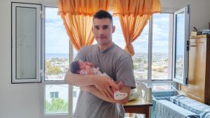 La Hermosa Arya Josefina Gallegos nació el pasado 9 de noviembre, sumándose a la gran familia mecánica. En las fotografías podemos verla, junto a los elementos que conforman el ajuar obsequiado por el SMATA Chubut (arriba), y en brazos de su feliz padre,  Joaquín Gallegos de la firma Feadar S.A., de  Comodoro Rivadavia (abajo).